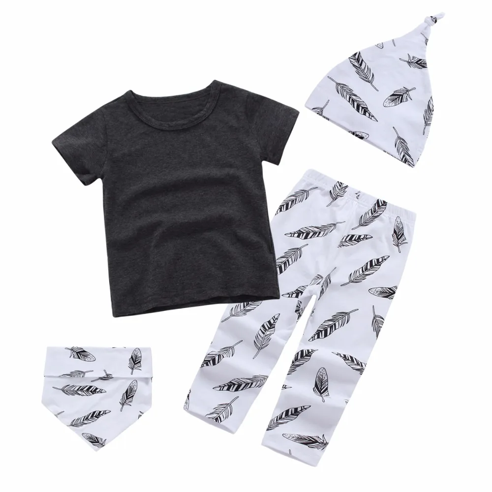 Package includes: T shirt + pants + hat +Bibs,4pcs.