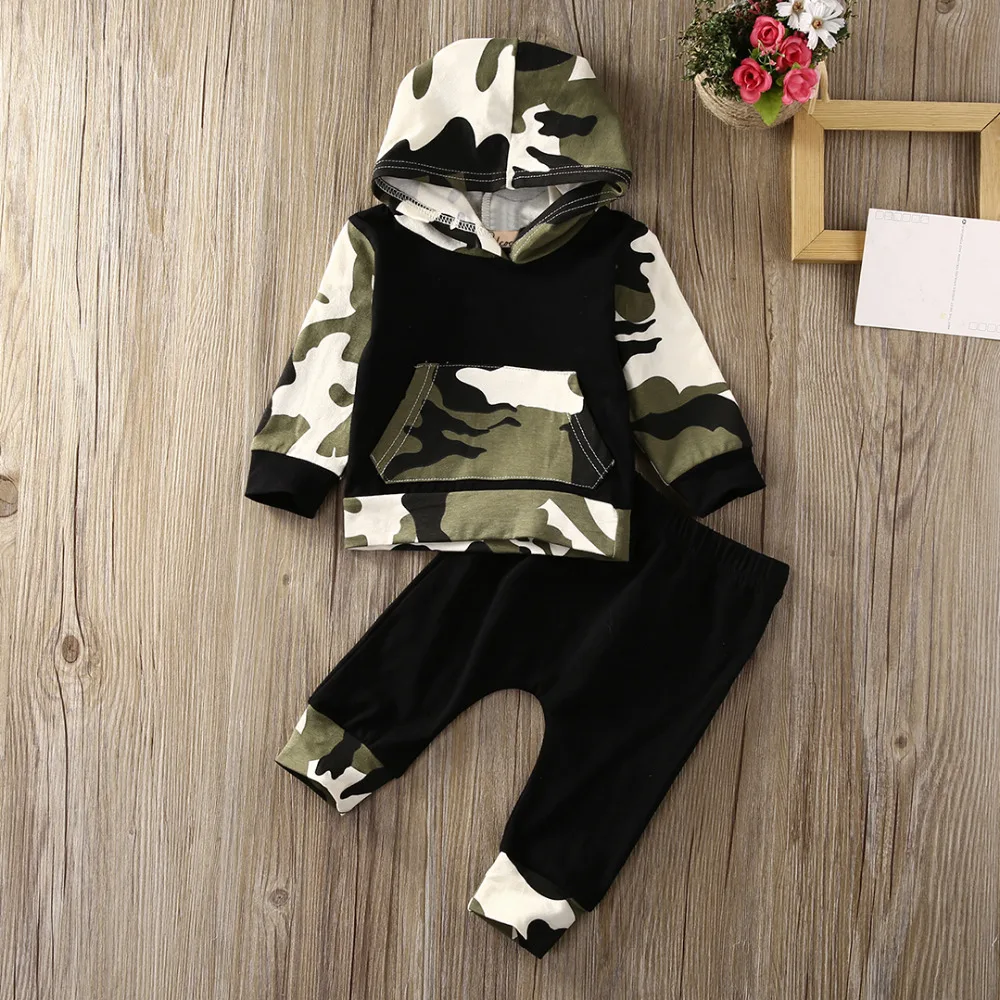 2pcs!! Autumn Spring Infant Clothes Baby Clothing Sets Baby Boys Camouflage Camo Hoodie Tops Long Pants 2Pcs Outfits Set Clothes