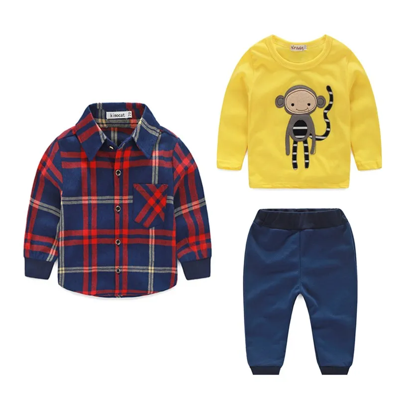 Baby boy clothes cotton t-shirt +plaid outwear+casual pants newborn boy clothes baby clothing set