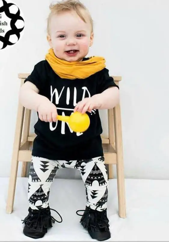 Baby Set Letter Print T-Shirt +Geometric Pattern Pants Boys Clothing Suit