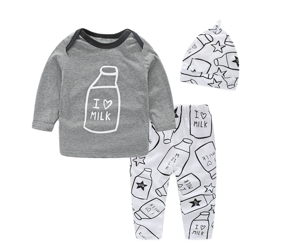 3PCS/Set New Fashion Baby Boy Clothes Set Spring Autumn Clothing Set For Newborn Baby Girl Long Sleeve T Shirt +Pant + Hat
