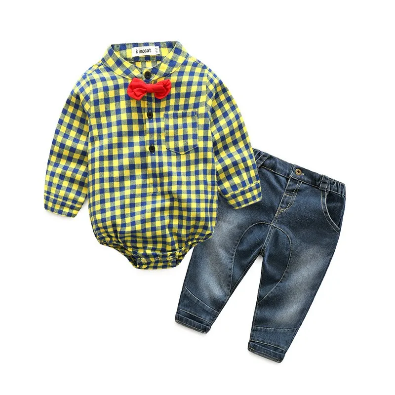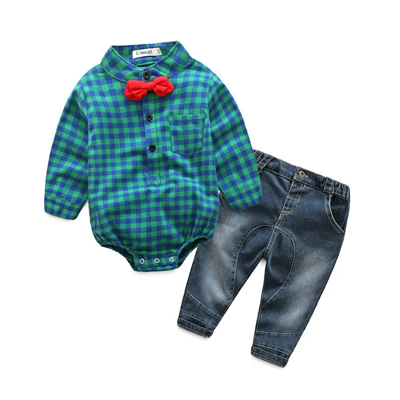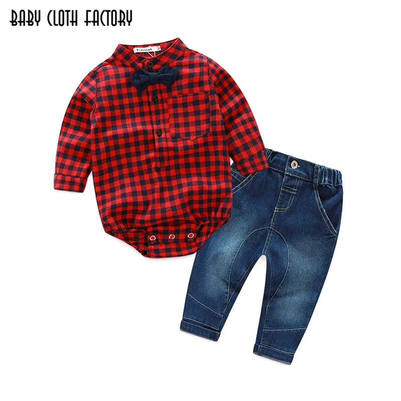 Fashion Newborn signle breasted rompers +jeans bebes Baby boy Newborn baby clothes full Sleeve Baby boy Clothes christmas