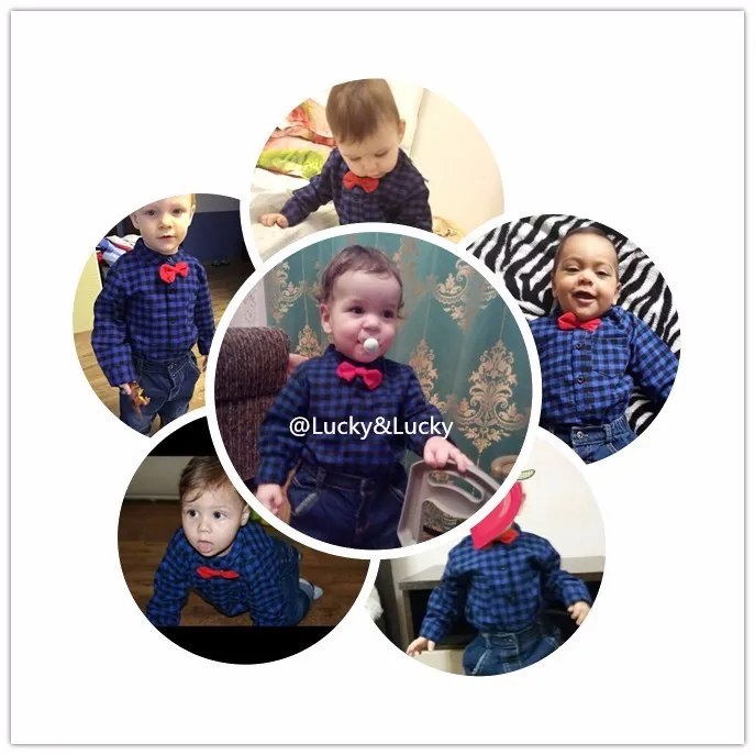 2016 new red plaid rompers shirts+jeans baby boys clothes bebe clothing set