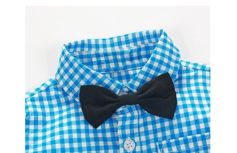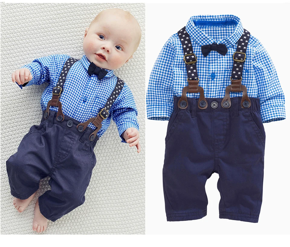 2016 New Brand Baby Boy Spring Clothes Gentleman Plaid Clothing Suit For Newborn Baby Bow Tie Shirt + Suspender Trousers