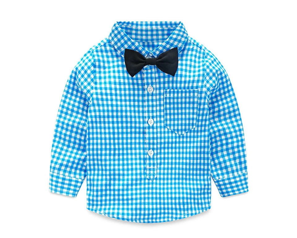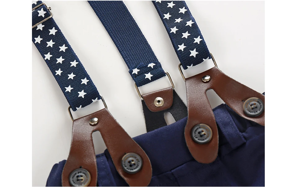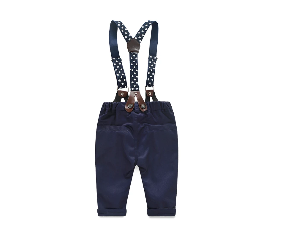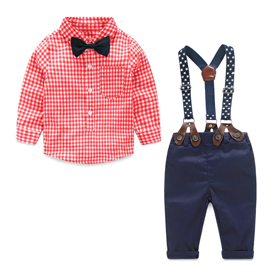 2016 New Brand Baby Boy Spring Clothes Gentleman Plaid Clothing Suit For Newborn Baby Bow Tie Shirt + Suspender Trousers