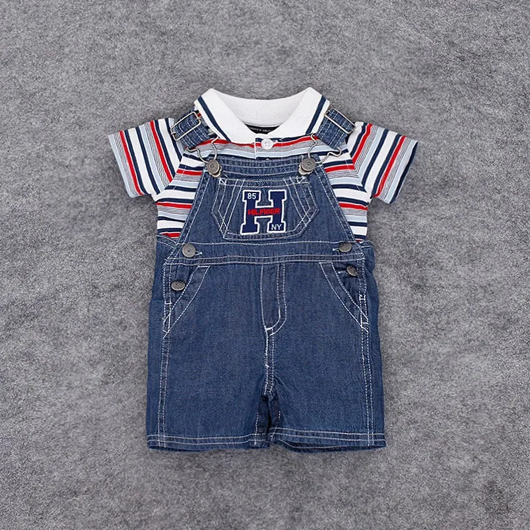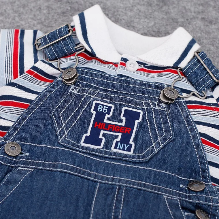 Summer Baby Boys Clothes Polo Striped t-shirt +Denim Jumpsuit clothes set Newborn Toddler Kids 2pcs/lot clothing suit