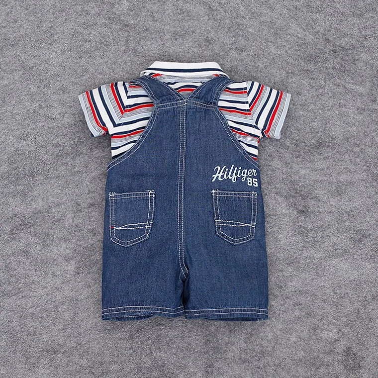 Summer Baby Boys Clothes Polo Striped t-shirt +Denim Jumpsuit clothes set Newborn Toddler Kids 2pcs/lot clothing suit