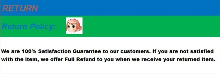 If you are satisfied with our products and service, please help to leave “Positive Feedback” and “5 Perfect Stars” for us when you receive your items and we will do the same for you. Thanks in advance!