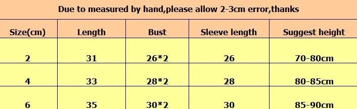 6M /12M size:coats length is 33cm,fit 65-75cm height 18 M size:coats length is 35cm,fit 75-85cm height 24 M size:coats length is 38cm,fit 85-95cm height if baby is fat,please choose larger size. Manual measurement, may be 1-3cm error. Order and shipping … Read More