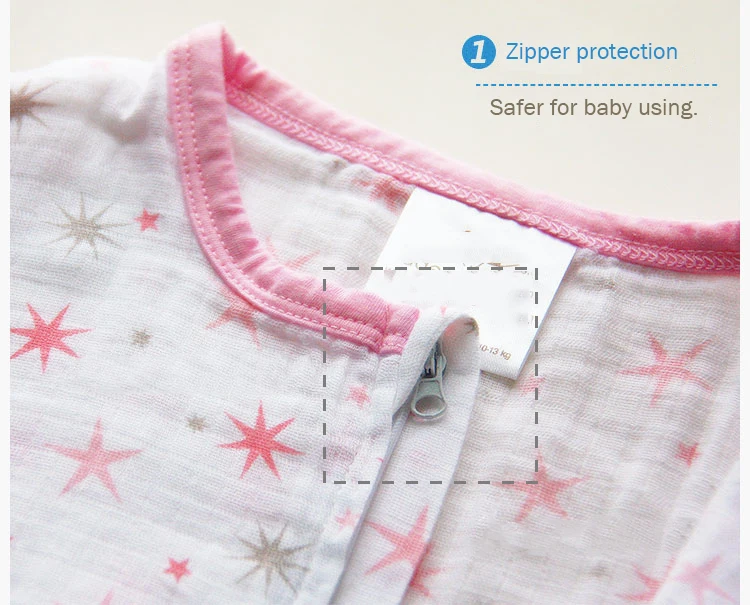 100% Muslin Cotton Baby Thin Slumber Sleeping Bag Mod For Summer bedding Baby Saco De Dormir Para Bebe Sacks Sleepsacks Product detail: 1. Zipper protection, make the sleeping bag safer for baby using. 2. Muslin cotton fabric is soft and comfort for baby skin. 3. Oiginal Double Washing Label Size: about 80cm length Suitable for: 7 to 18 months baby packing: OPP bag unit piece weight: 120g