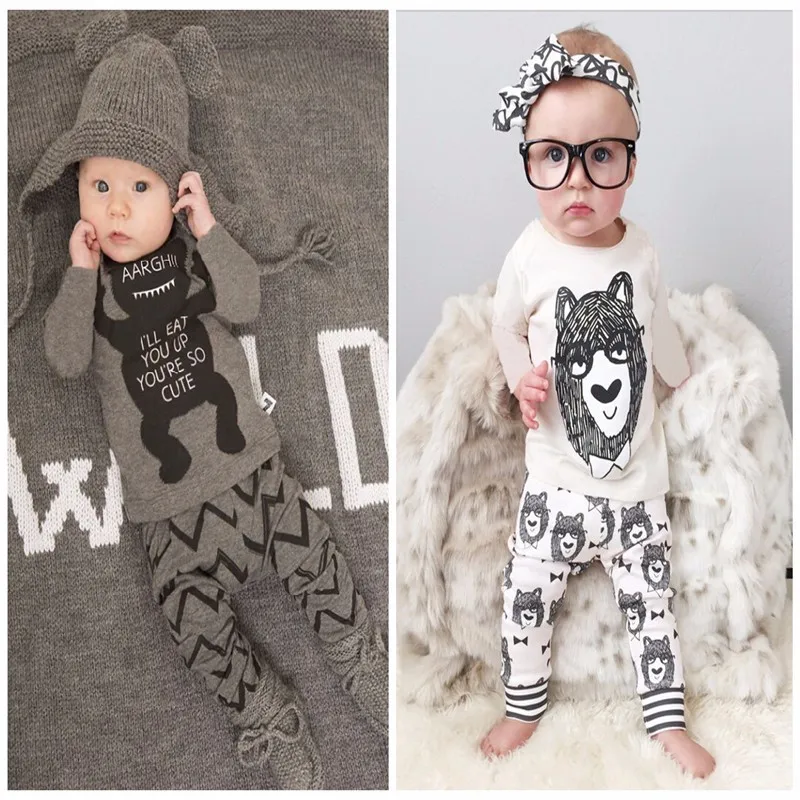 Baby Cotton Long Sleeve Top+Full Pants Clothing Set