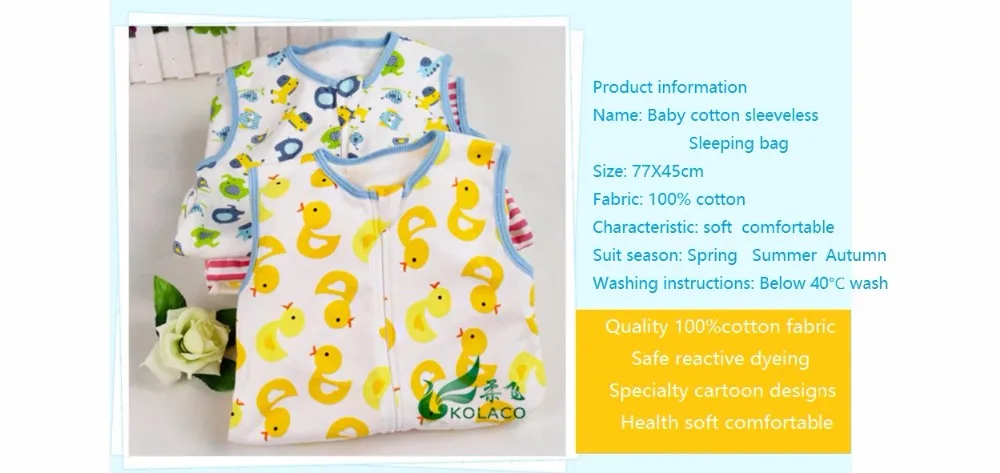 Giol Me Num Summer Newborn sockpuppet Sleepsacks Cotton 0-18months baby sleeveless cartoon sleeping bag baby vest sacks 77X45cm