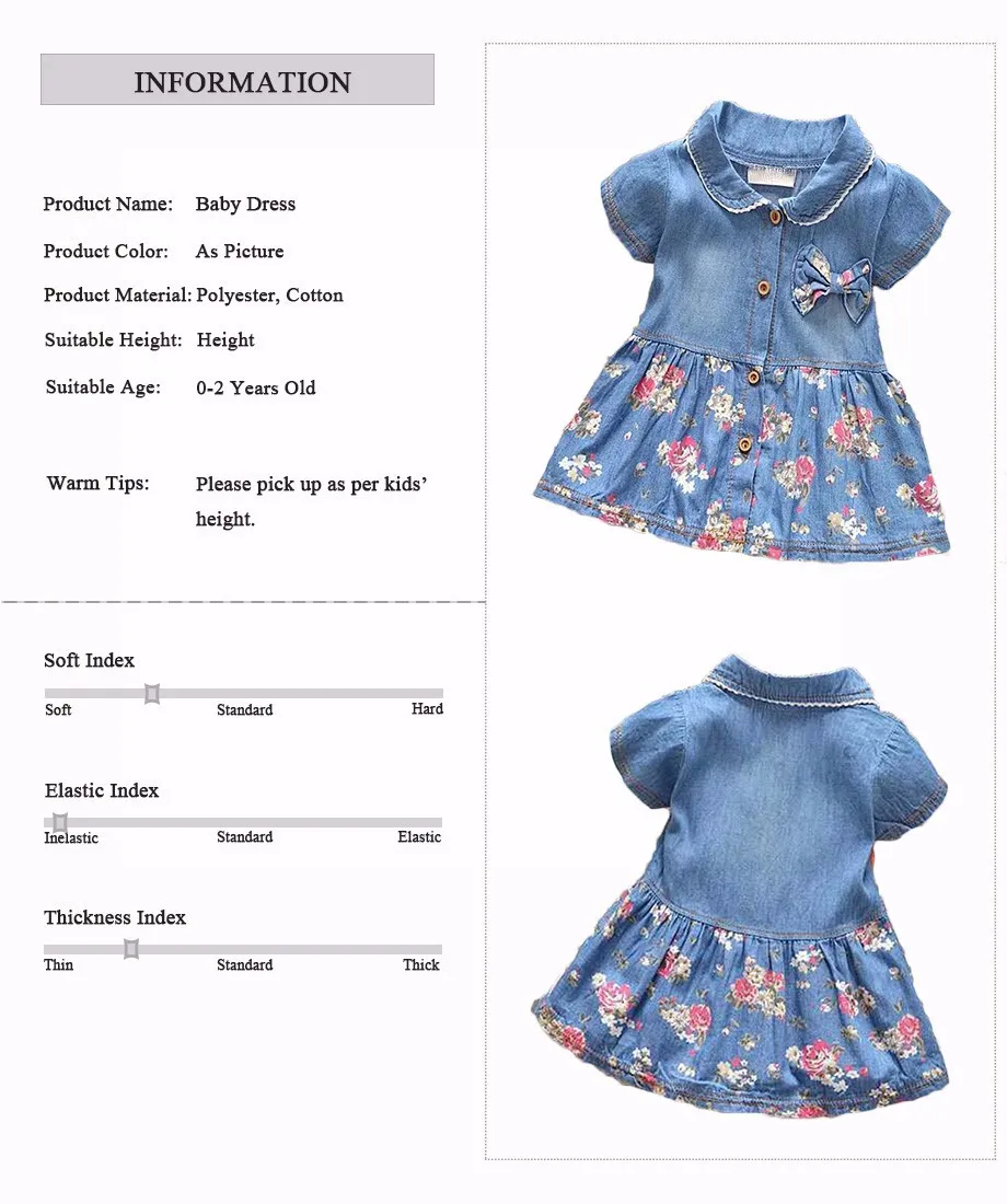 2016 Spring Summer Baby Dress Casual Style Baby Girls Dress High Quality Bow Baby Denim Dress Turn Down Collar Baby Girl Clothes