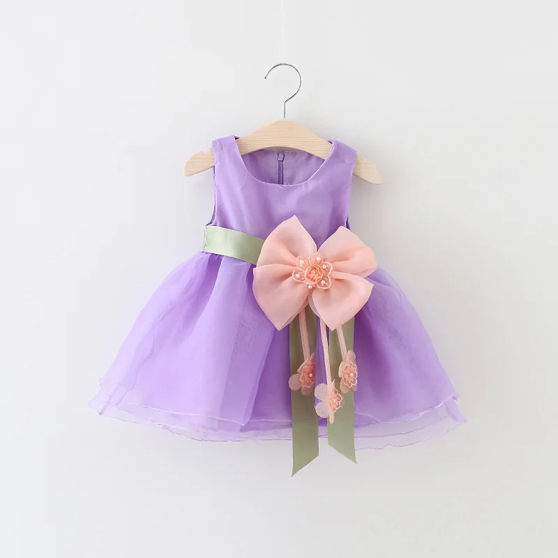 2017 Baby Dress Summer Tulle Bow Flower Vest Party Newborn Dresses For Girls Toddle Princess Baby Clothes