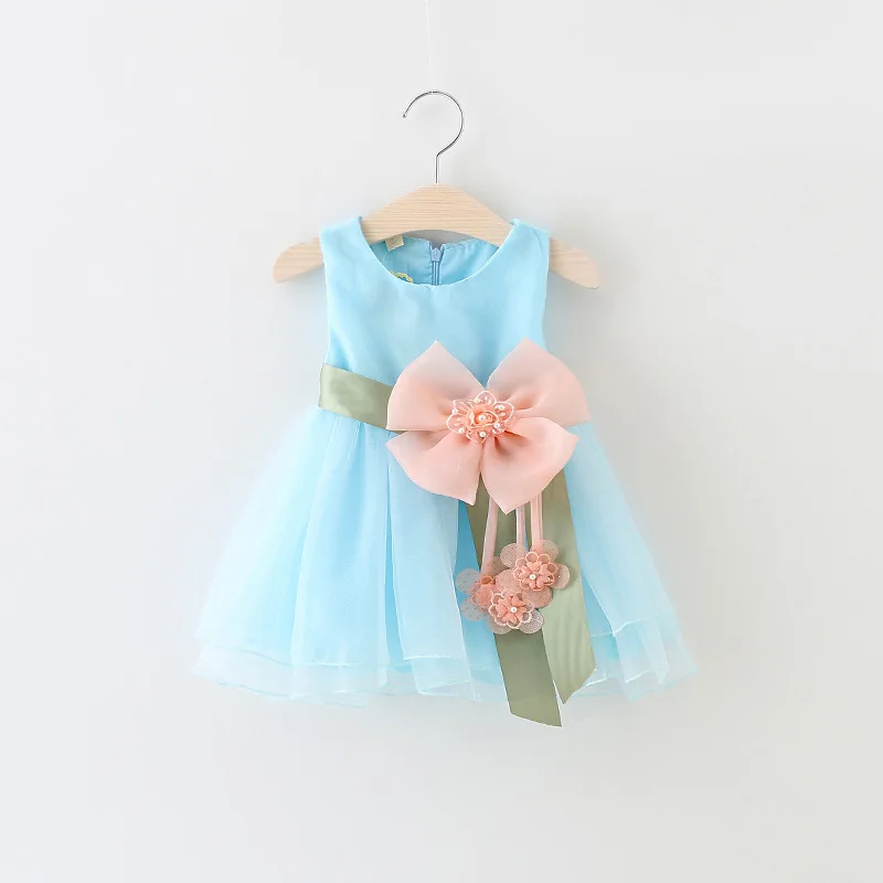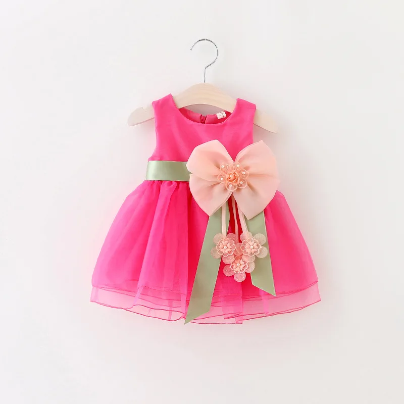 2017 Baby Dress Summer Tulle Bow Flower Vest Party Newborn Dresses For Girls Toddle Princess Baby Clothes