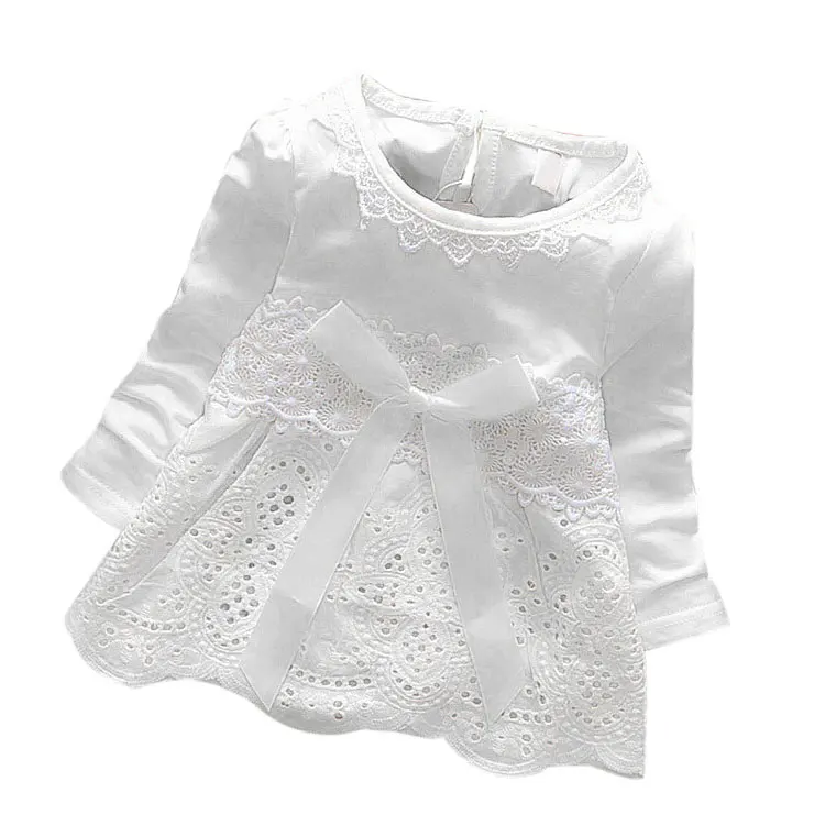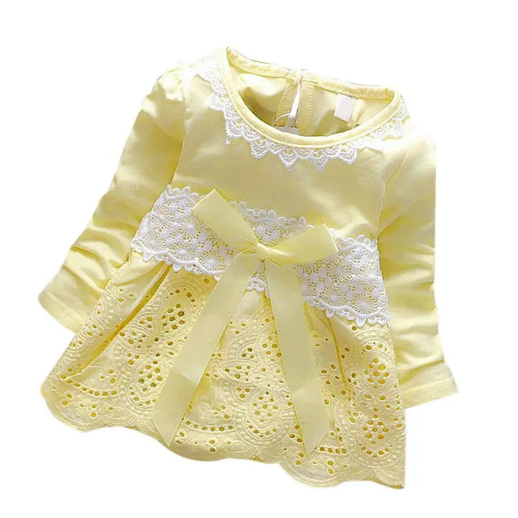 Baby Girls Lace Flower Dresses Sweet Crochet Long Sleeve Bow knot Summer Floral Cotton Hollow out Dress little vestido infantil