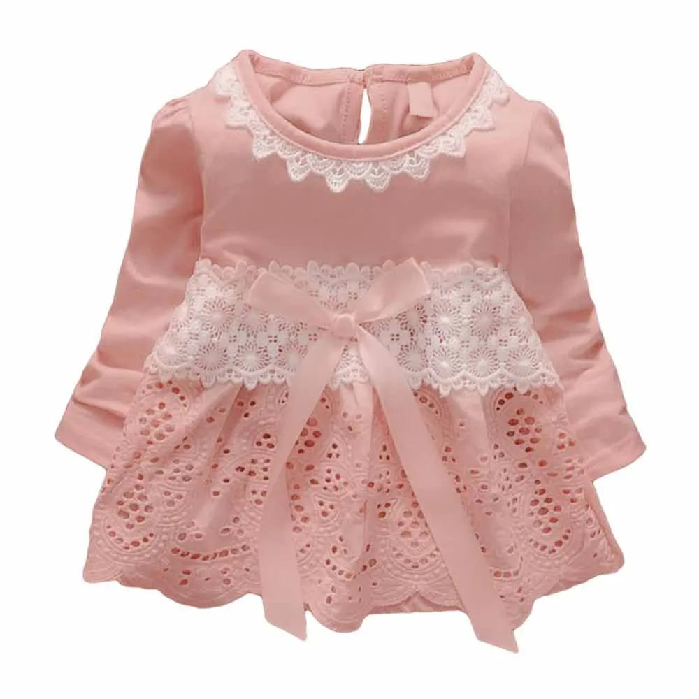 Home » » Baby Clothing » Baby Girls Clothing » Baby Dresses » Baby Girls Lace Flower Dresses Sweet Crochet Long Sleeve Bow knot Summer Floral Cotton Hollow out Dress little vestido infantil