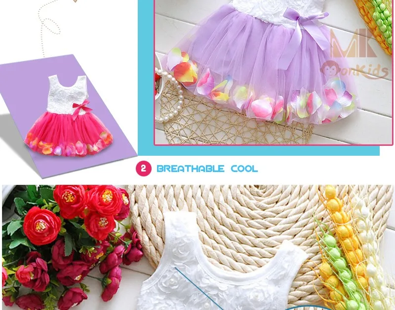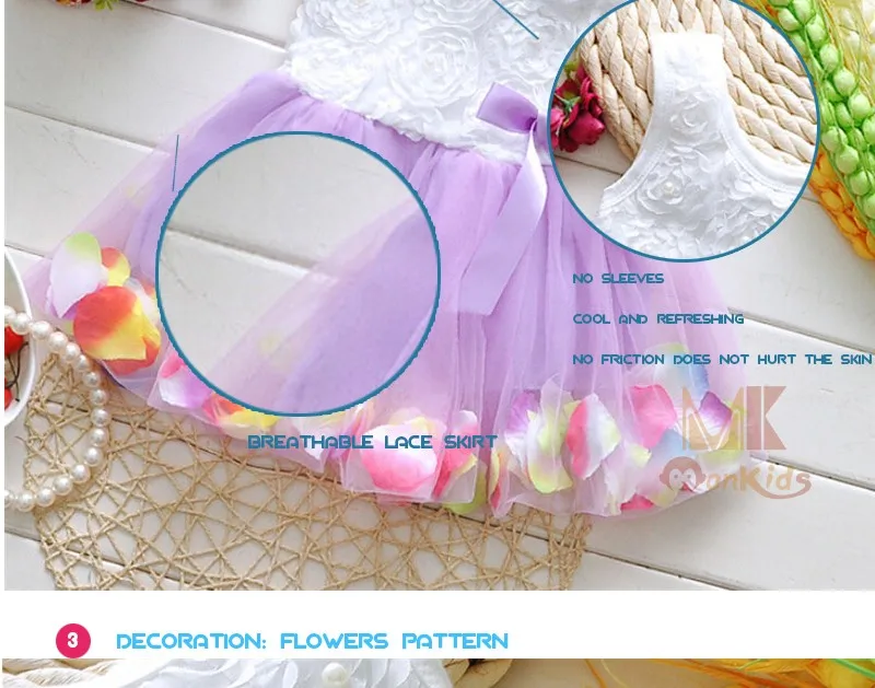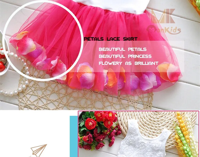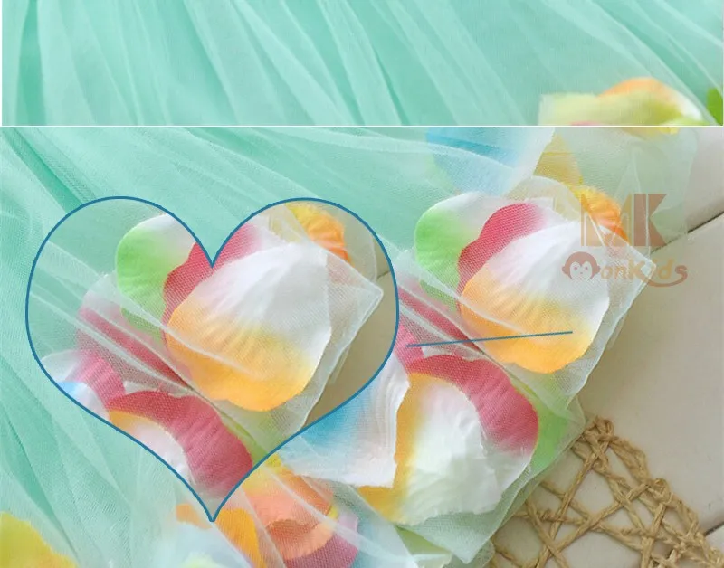 Pattern: Lace Flower Blooms / Bowknot / Tulle Skirt Fabric technology: Soft handle Suitable season: Summer Gender: Girls Name:Monkids