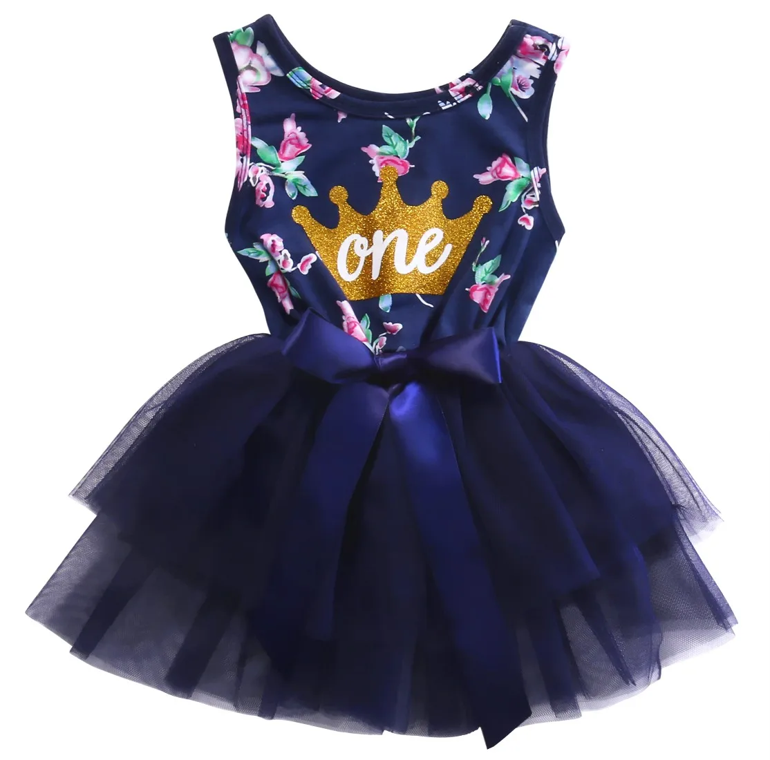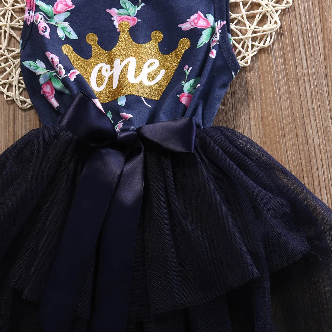 Newborn Baby Girl Clothing Set 2017 Summer Fashion One Printed Lace Big Bow Party Tulle Flower Princess Wedding Dresse