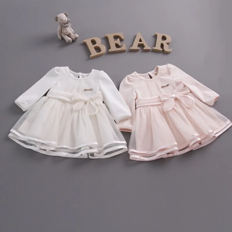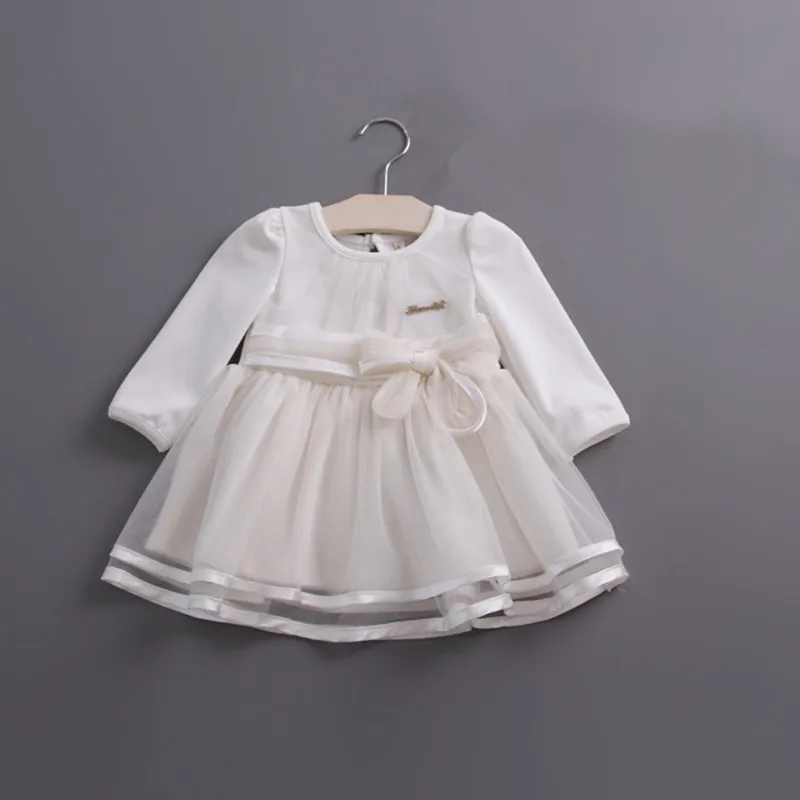 Retail-2016 autumn bownot lace dress baby girls cute baby infant lace dress ball gown girl sundress princess dress 3 color