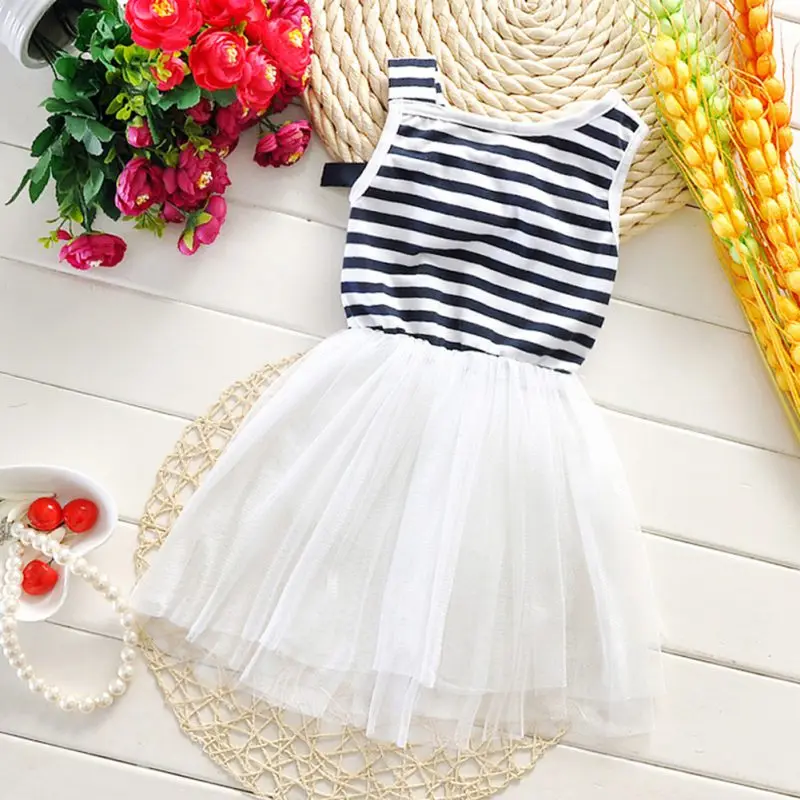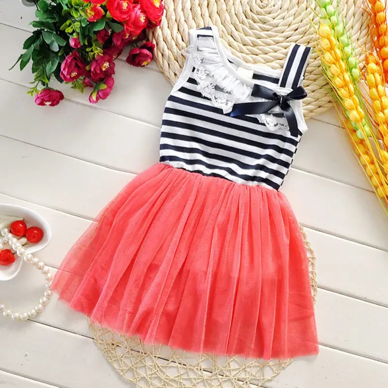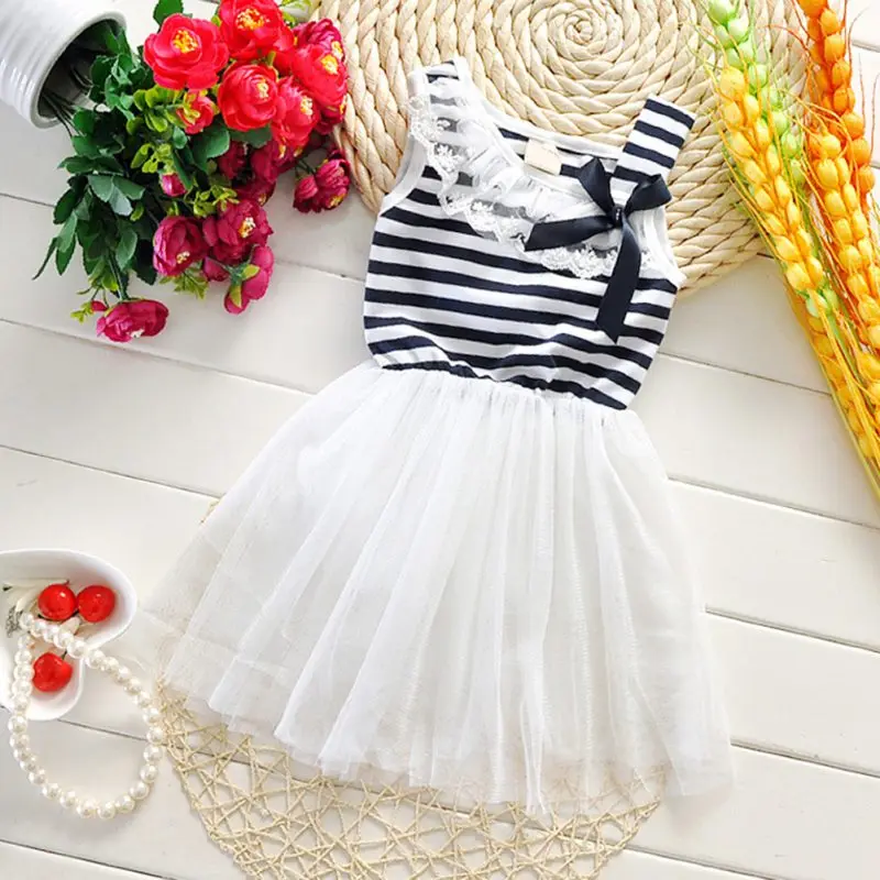 summer 2017 New baby girl ball gown dress lace+cotton material Bowknot Striped Bubblet Tutu Dress 0-2Y
