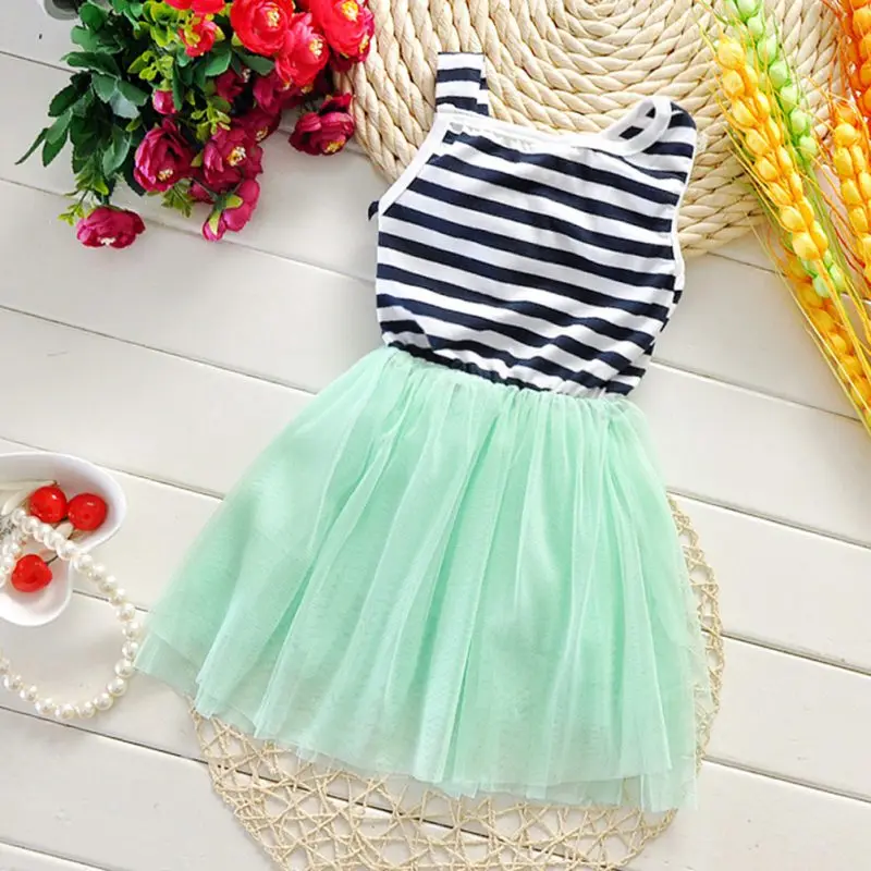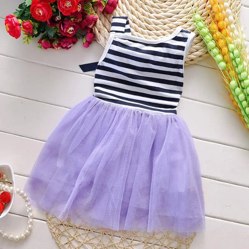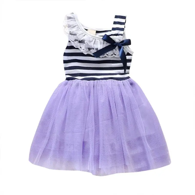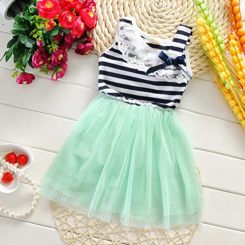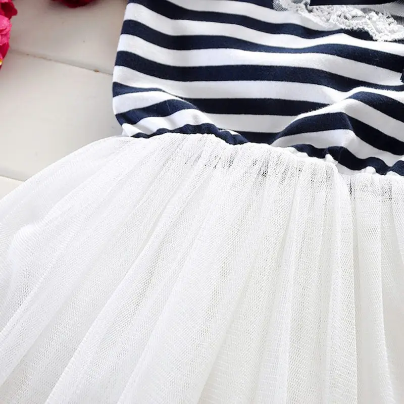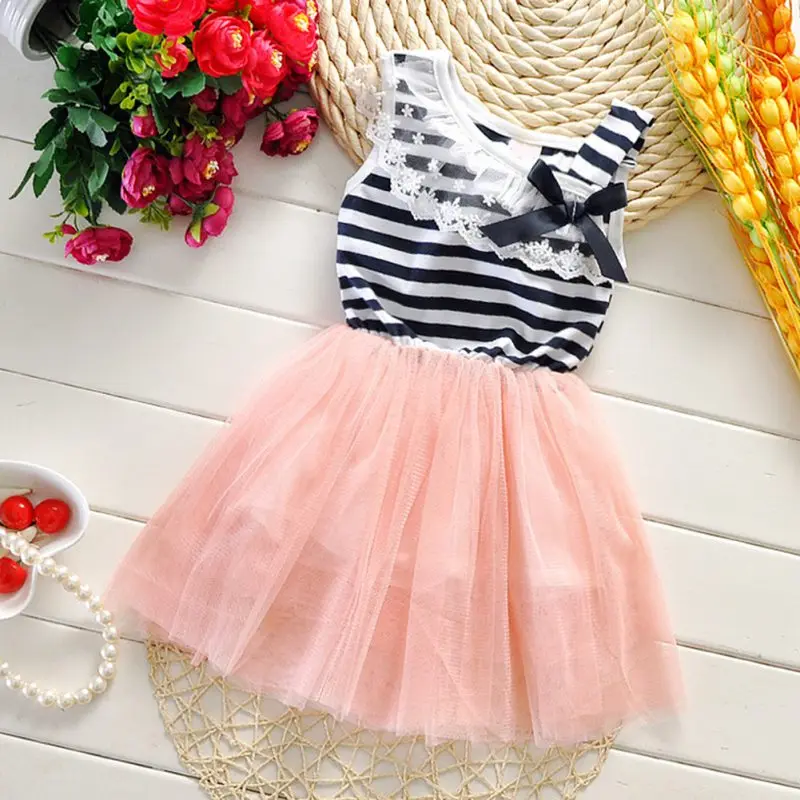 summer 2017 New baby girl ball gown dress lace+cotton material Bowknot Striped Bubblet Tutu Dress 0-2Y