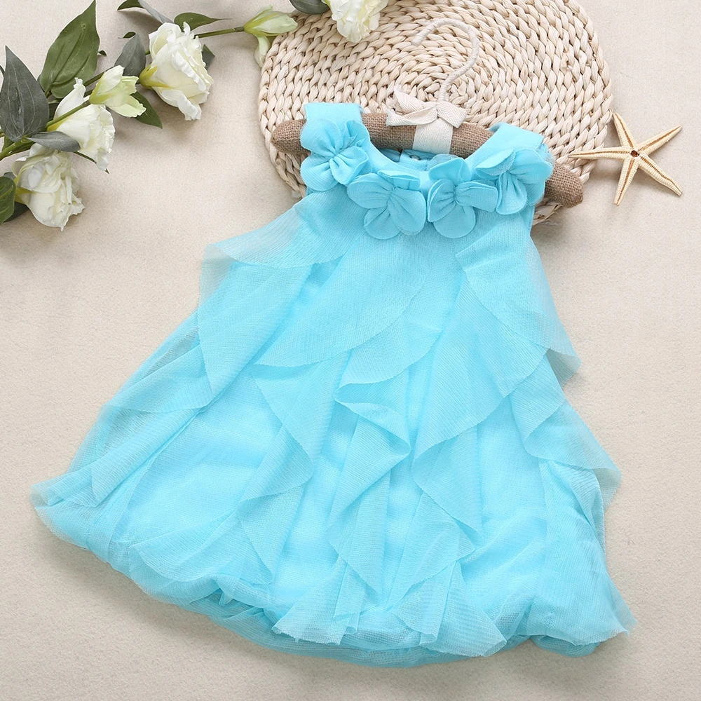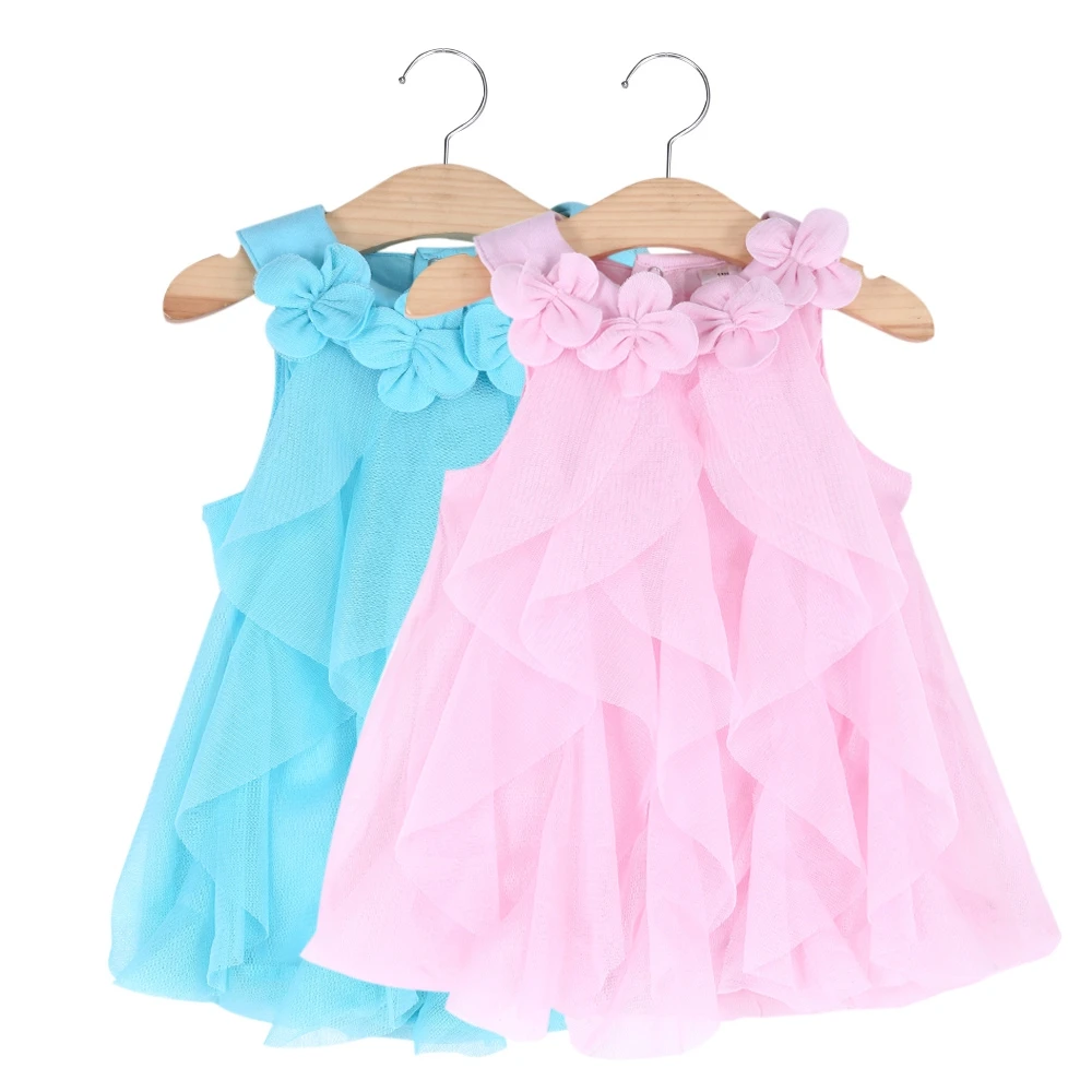 summer baby dresses Cute Flower Turn Down Collar Sleeveless Mesh Pure Color Baby Girls Dress baby dresses girl baby tutu dress