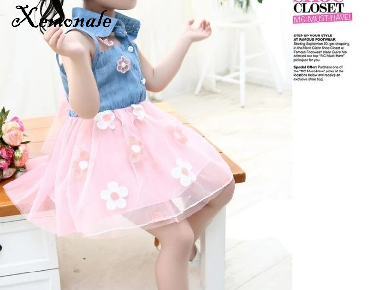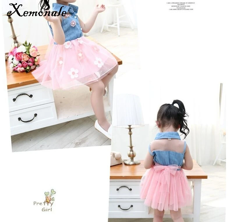 Princess Baby Girl\\\\\\\’s Kids Denim Sleeveless Tops Tulle Tutu Skirt Mini Dress