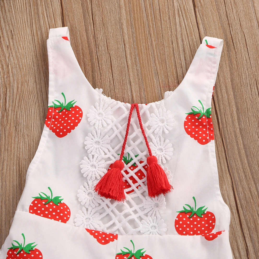 Strawberry Baby Girls Romper Bodysuit Clothes Outfits !! High quality and Brand new 100% Main Color: As Picture Show New in Fashion Material: 100% Cotton Attention plz: If your kid is chubby, we recomend choosing a larger size, thanks. Please kindly refer to your kids actual height and the size chart before buying/bidding. Thanks. Size Chart:
