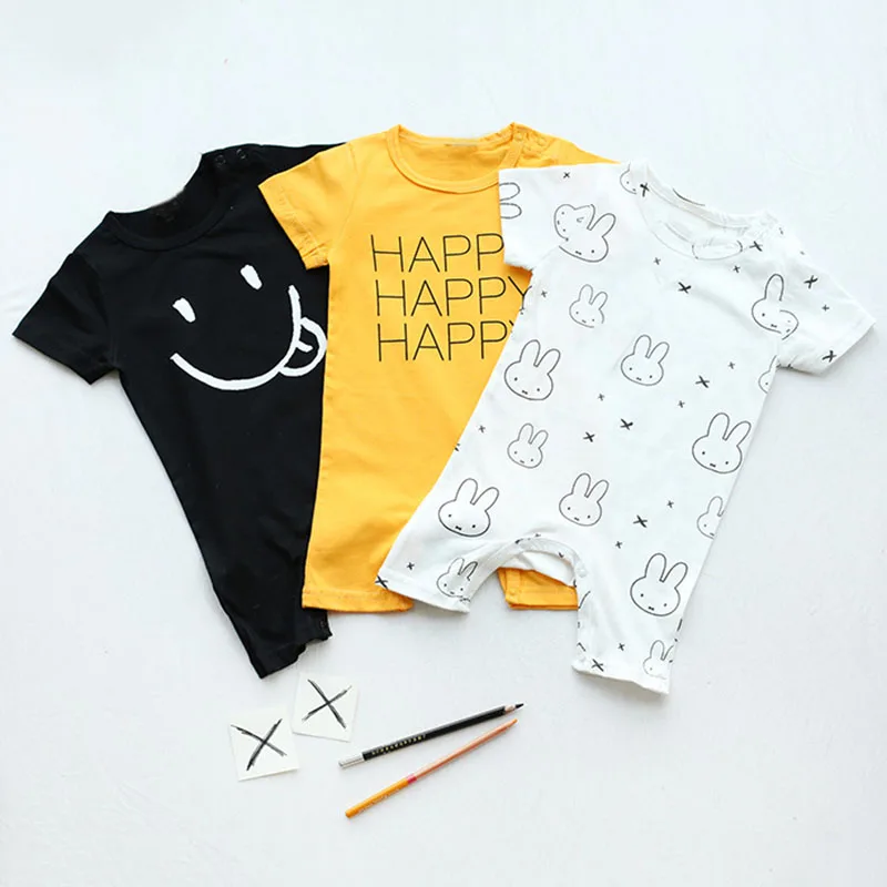 Baby Boys Cotton Cartoon Rompers Girls Romper Letter Infant Summer Shorts Sleeve 2017 New Arrival Children Jumpsuit
