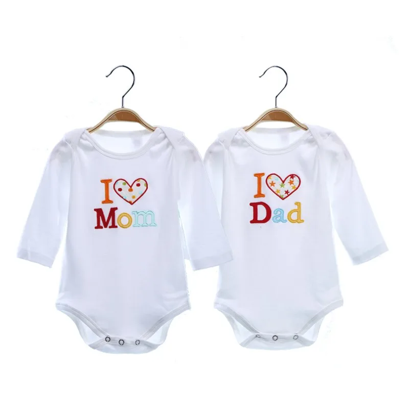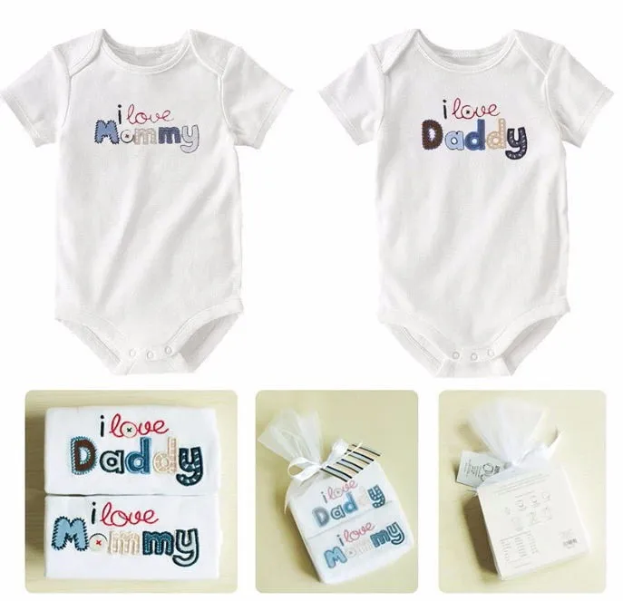 2PCS/LOT Newborn Baby Clothing Long Sleeve Cotton baby Rompers Girls Boys Clothes roupas de bebe infantil costumes 1Lot=2 Pieces=I love MOM+ I love DAD With beautiful gift package Size :0-6Months,6-12Months, 12-18 Months,18-24 Months