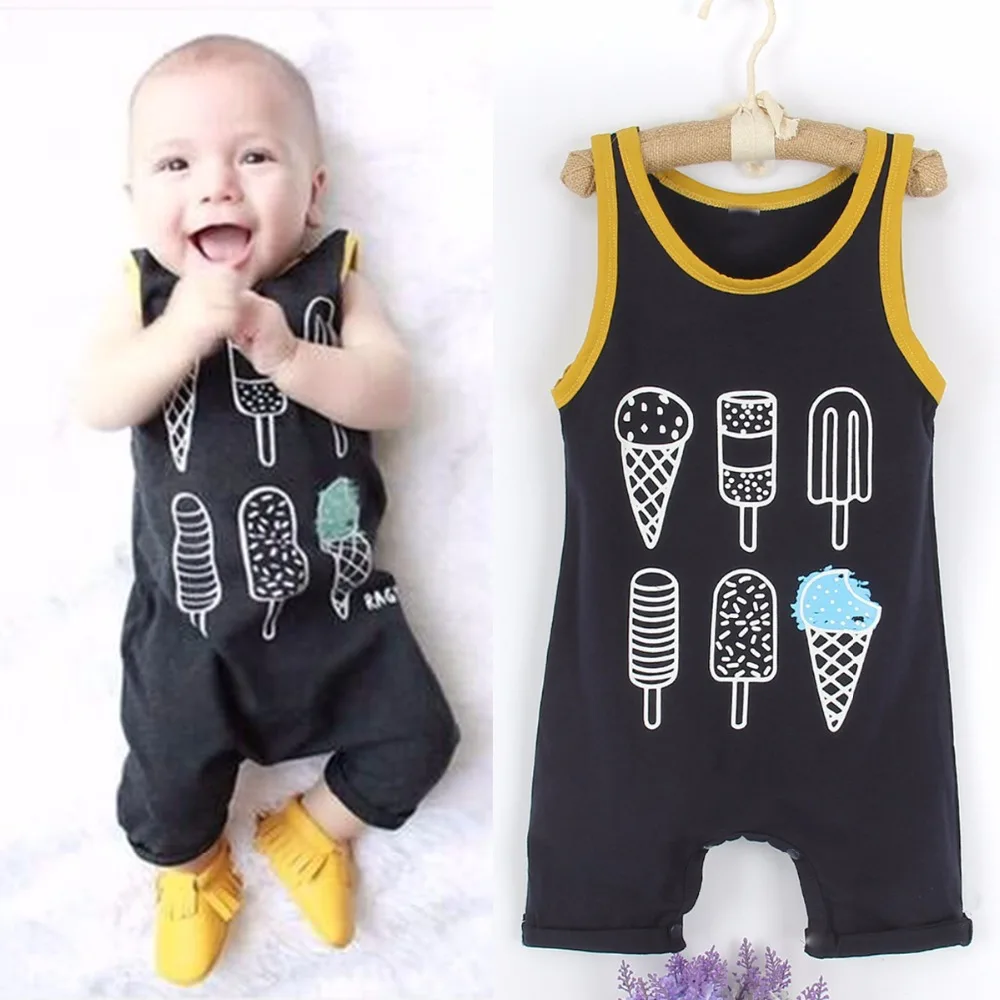 Puseky 2017 Baby Clothing Sleeveless Rompers Newborn Toddler Infant Baby Boy Girl Cotton Ice cream Romper Jumpsuit Clothes Sum