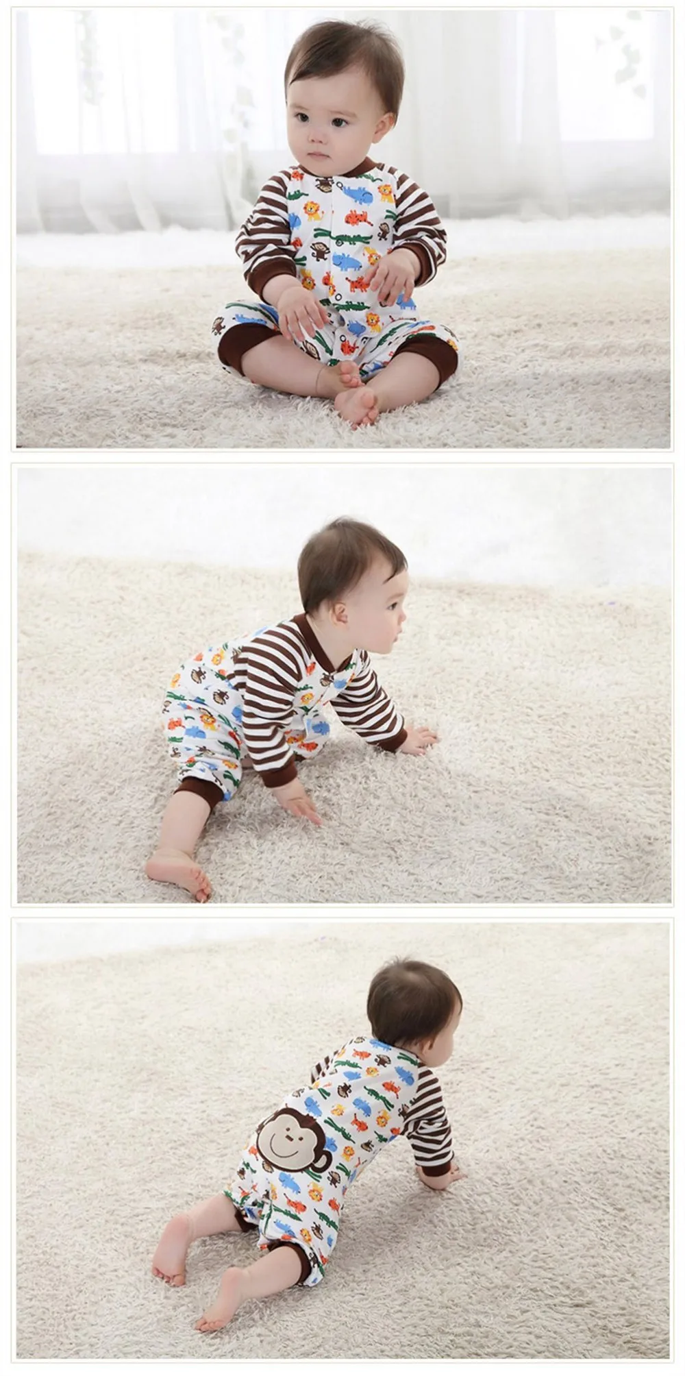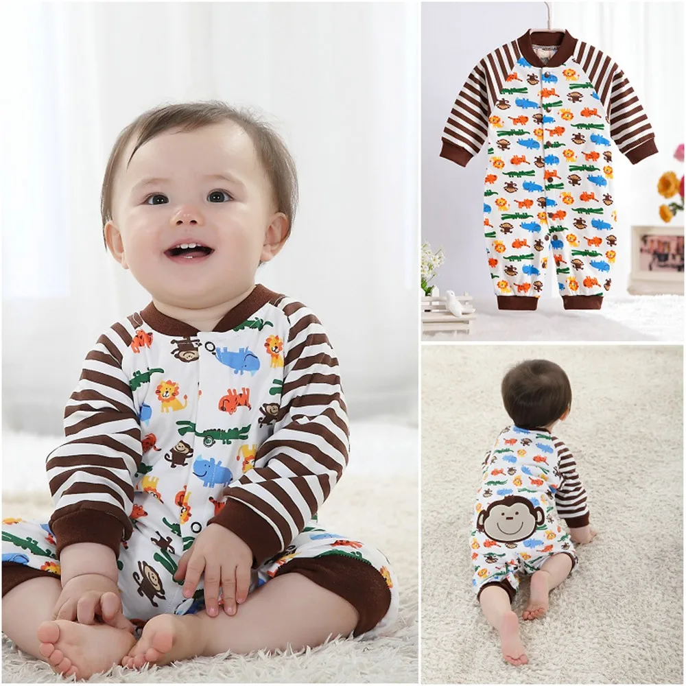 Spring Autumn New Cute Animal Pattern Baby Rompers Boys Girls Long Jumpsuit Comfortable Cotton Crawling Coverall Clothing CL0884