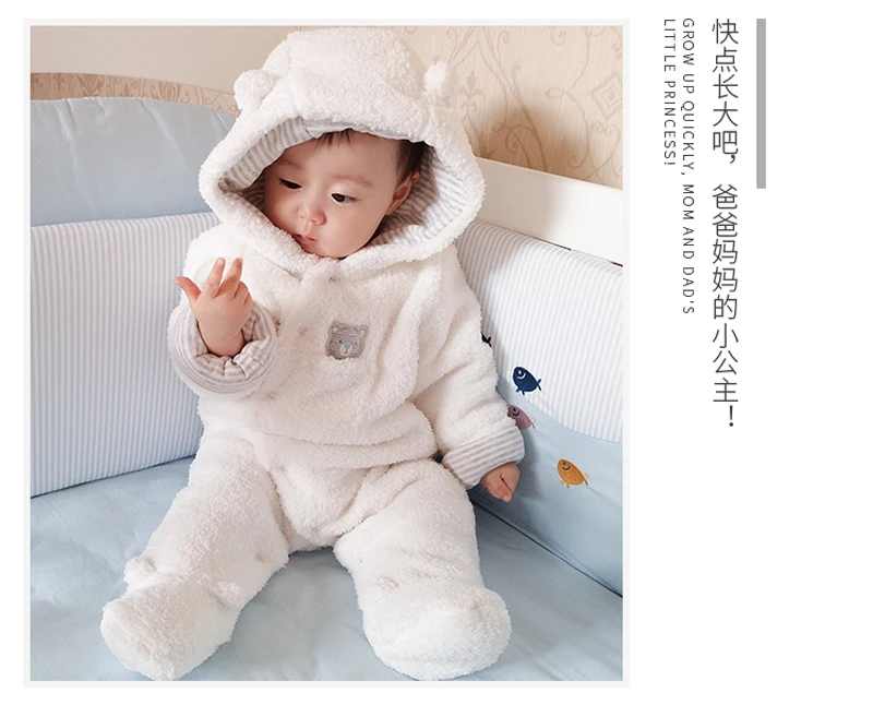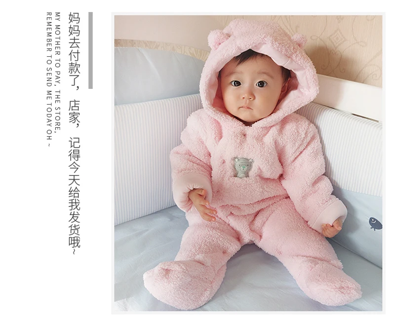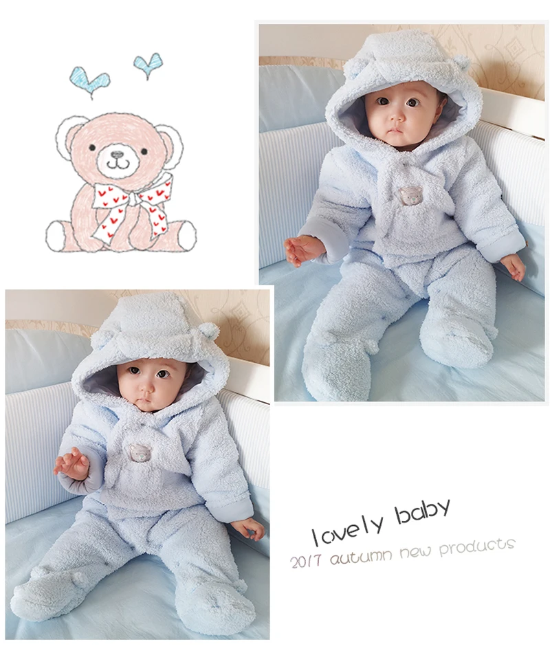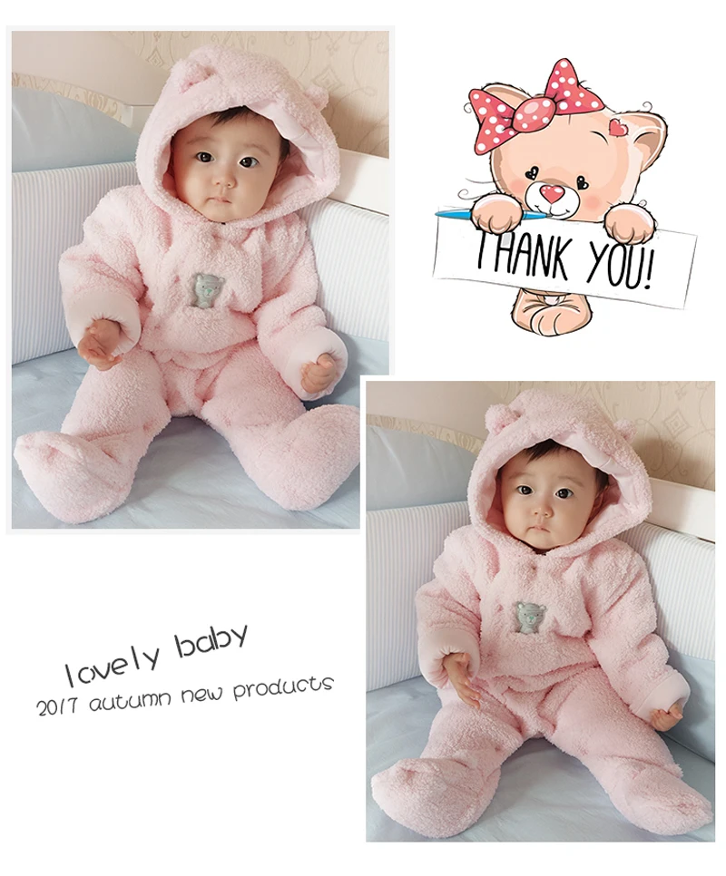 Newborn baby clothes girl and boy bear onesie baby girl boy rompers hooded plush jumpsuit winter overalls for kids roupa infantil menina
