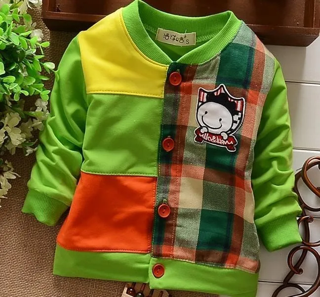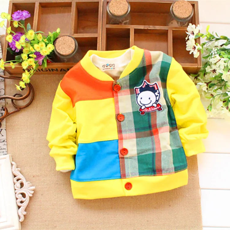 (1piece /lot) 100% cotton 2016 lattice button baby outerwear (0-3 year old )