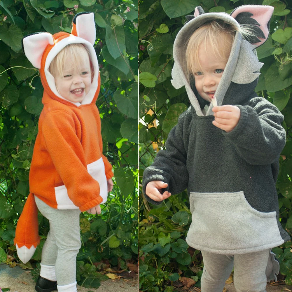 Baby Boys Clothes Animal Coat Kids Toddlers Cute Fox Warm Cotton Long Sleeve Hoodie Tops Fleece Coat with Fox Ear Tail