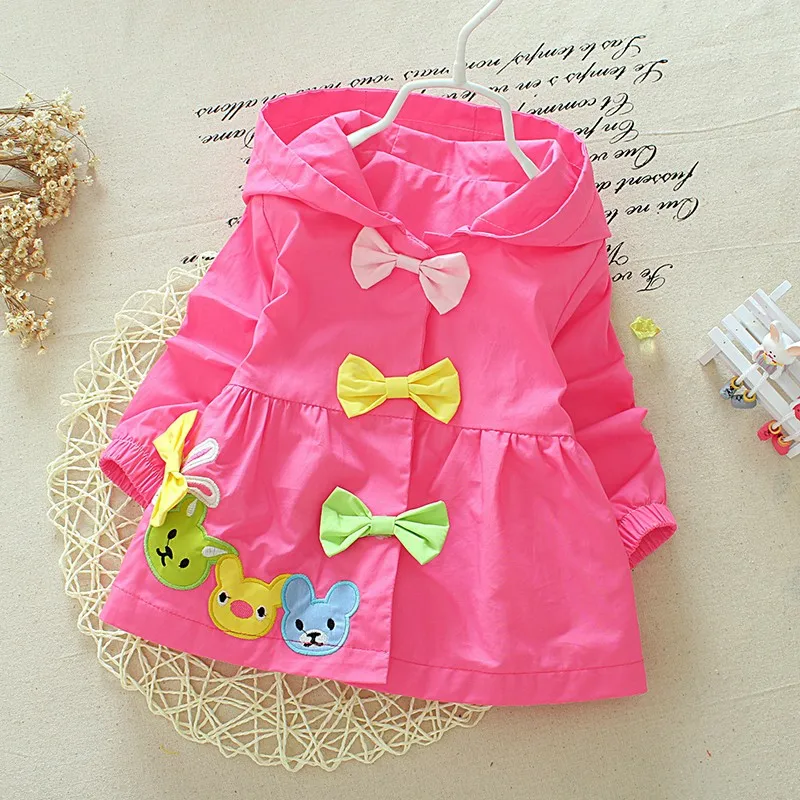 Baby Girls Jacket Clothes 2017 Spring Cotton Sweet Newborn Baby Bow Cartoon Bear Hooded Windbreaker For Girls Jackets And Coats
