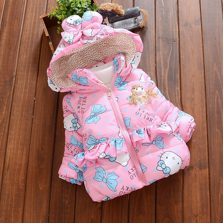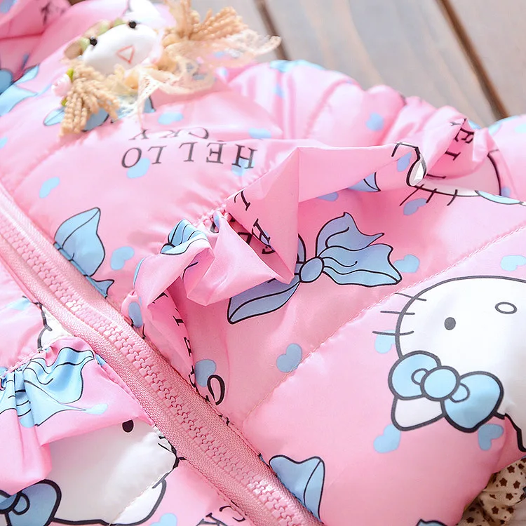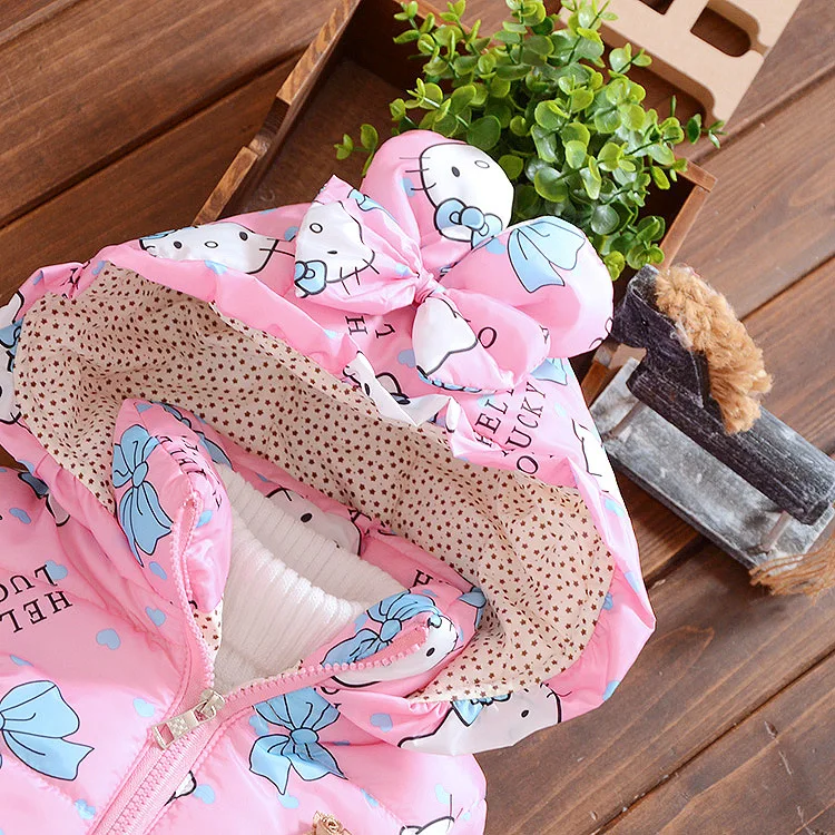 Baby Winter Jacket for Girl Winter Coat 7-24M Hello Kitty Cotton Padded Down Parkas Hooded Kids Windbreaker Thick Warm Outerwear