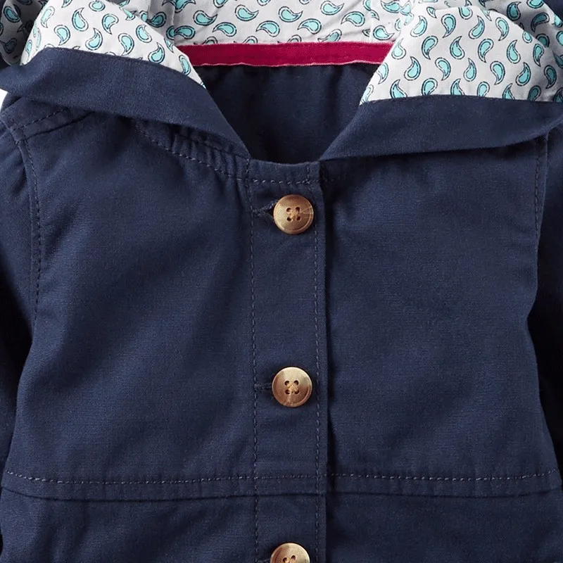 Soft trim at neckline, cuffs and hem__Printed cotton lawn-lined hood