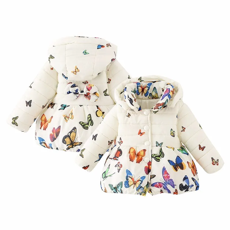 0-24M Toddler Baby Girls Butterfly Coat Kids Winter Warm Cotton Jacket Outerwear