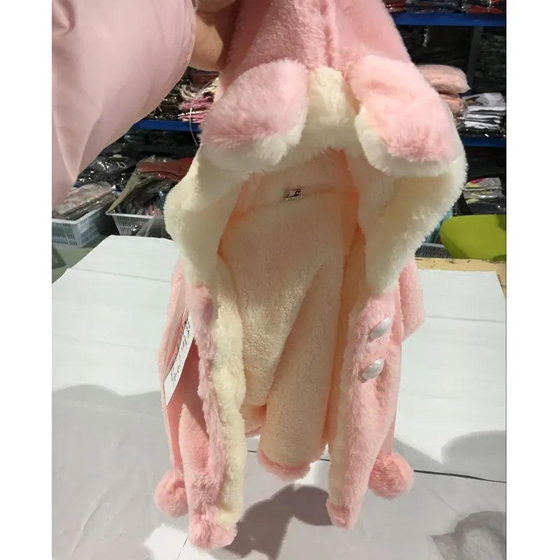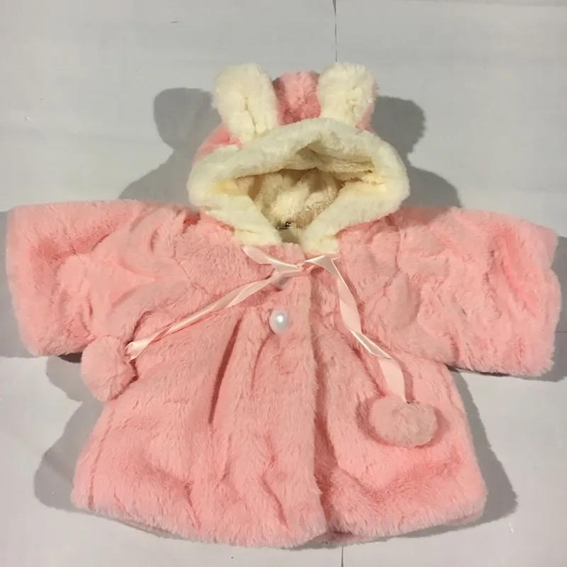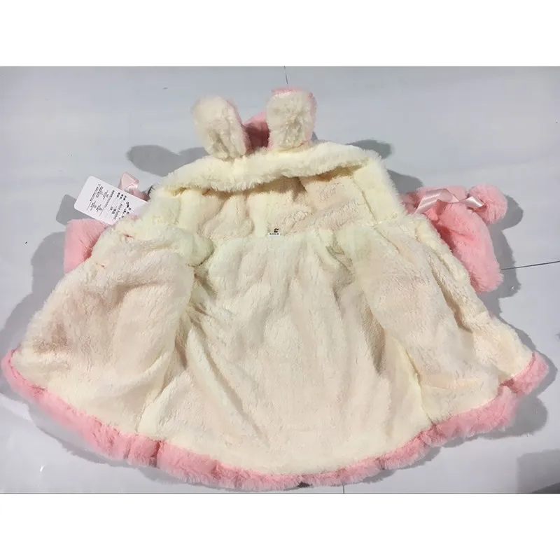 0-2Y Hot sale infant baby coat girl pink white rabbit hat hairball winter soft warm jacket kid cozy flannel kids children clothing cute bow baby girl coat outdoor free shipping