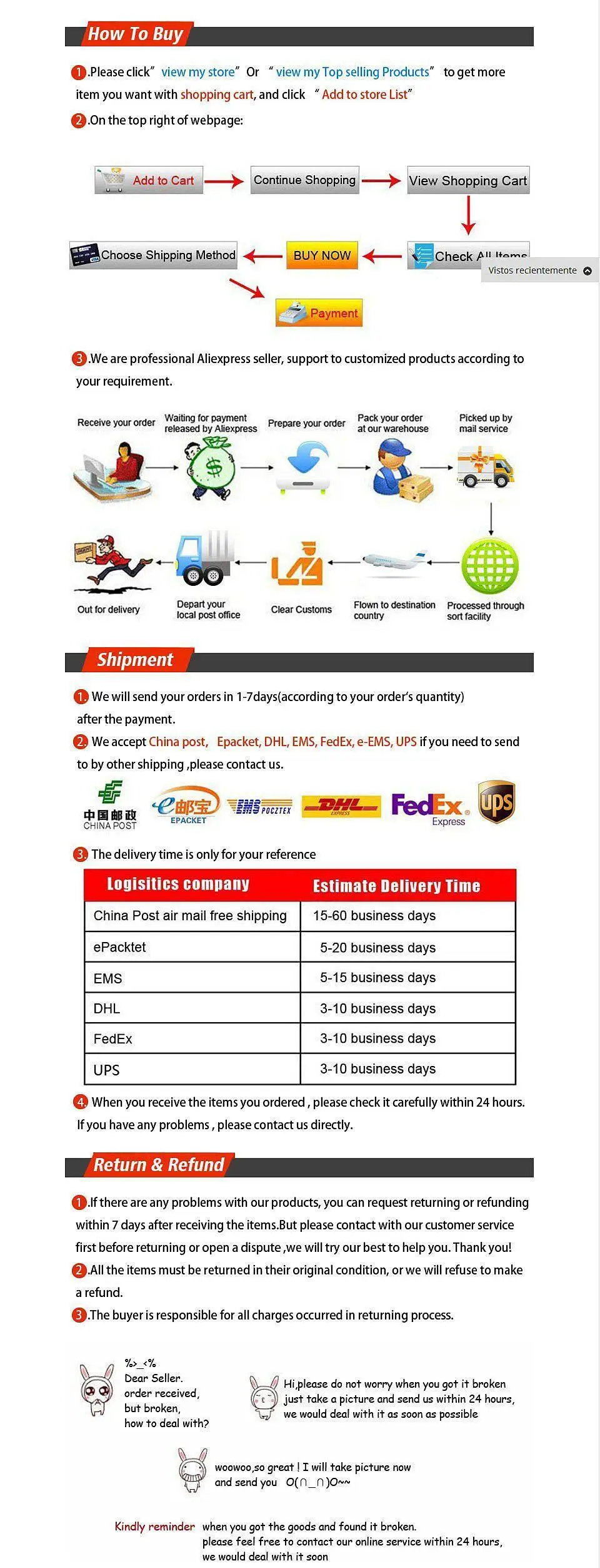 Thank you for browsing our shop. Please provide your 1:full name and detail address,house number, 2:the correct zip number and phone number. We will ship the parcel as soon as we receive your payment. We are direct manufacturer, so we … Read More