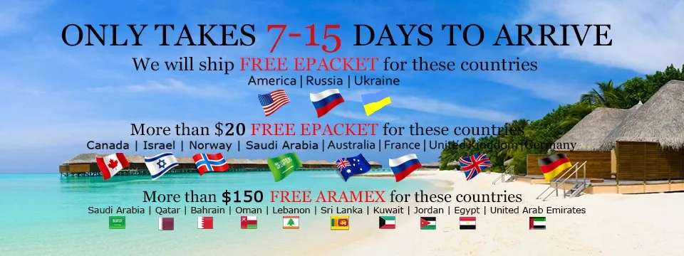 | Over $20 Free ePacket | Saudi Arabia,Israel, Norway,Canada , Australia ,France, United Kingdom, |