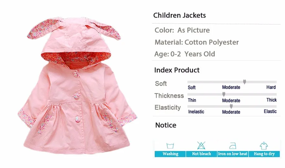 New Spring Autumn Baby Girls Coat Love Rabbit Infant Newborn Jackets Hooded Kids Outerwear Windbreaker For Baby Girls Clothes
