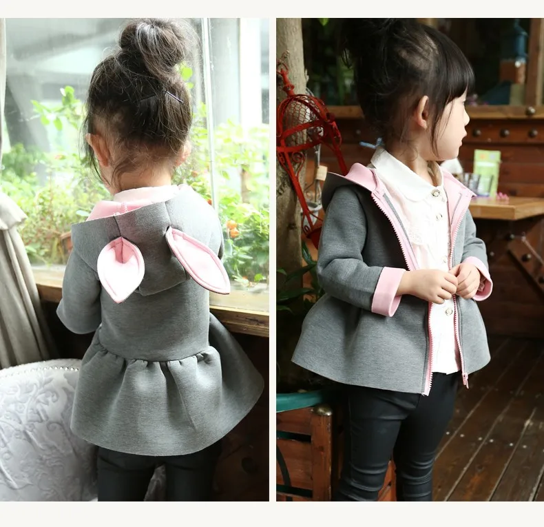 NEW Spring Girl Coat Baby Girls Jackets Autumn Toddler Girl Clothes Cotton Rabbit Ears Hat Jackets for Girls Hoody baby coat