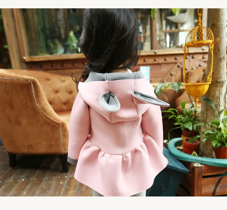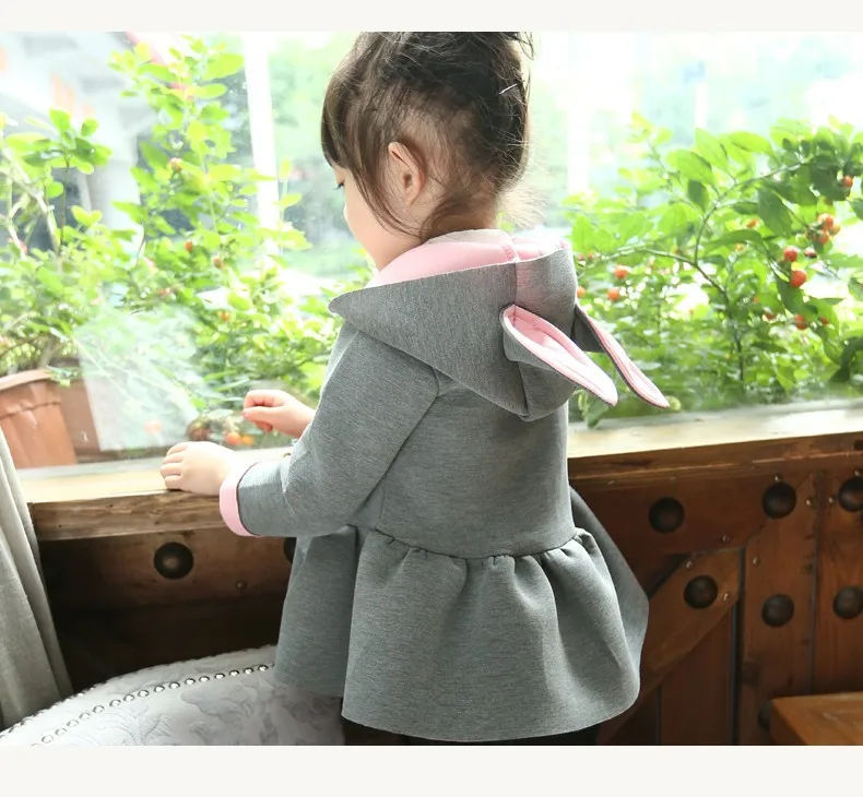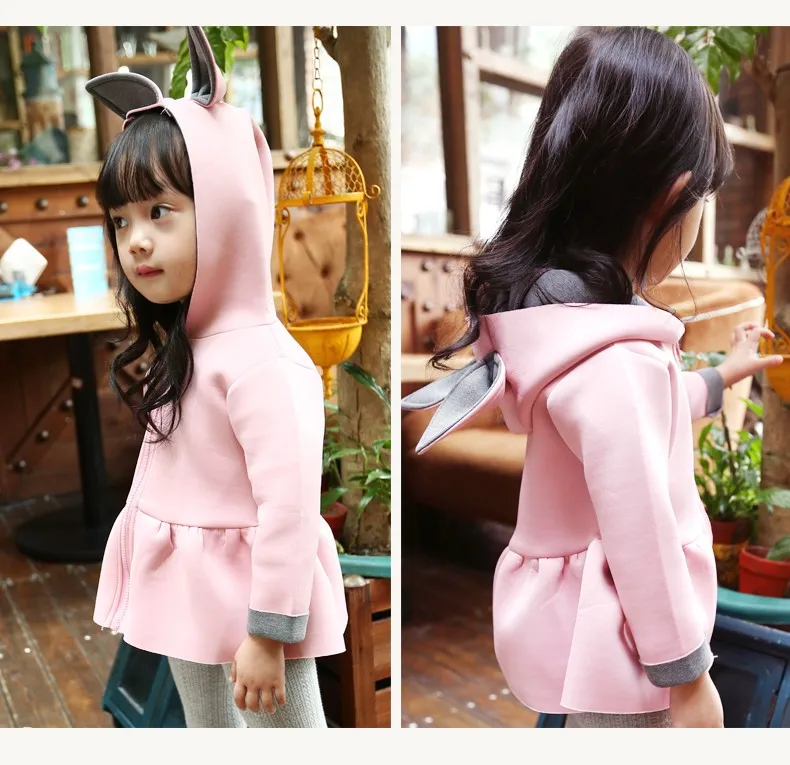 NEW Spring Girl Coat Baby Girls Jackets Autumn Toddler Girl Clothes Cotton Rabbit Ears Hat Jackets for Girls Hoody baby coat
