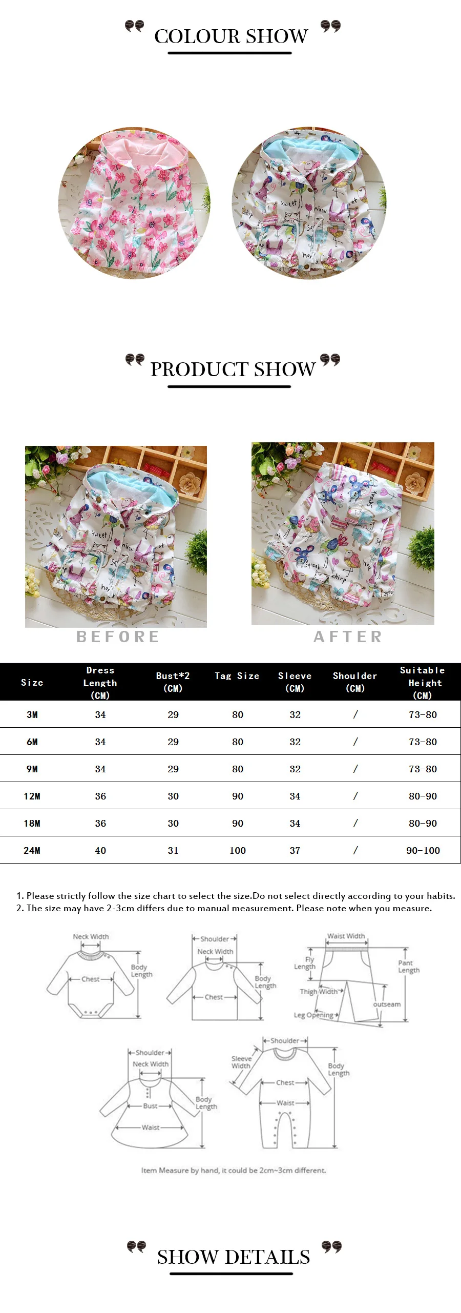 7-9 month size the coat length is 42cm,the sleeve is 33cm,bust is 32X2cm is fit for 70-80cm height 10-12 month size the coat length is 44cm,the sleeve length is 35cm,bust is 33X2cm is fit for 80-90cm height 13-18 month size … Read More