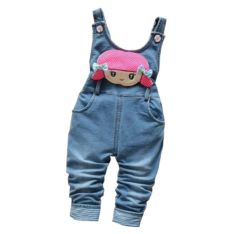 Dear friend: Product:BibiCola children pants baby girls cute cartoon cowboy suspender trousers jeans pants kids clothing new 2017 spring/autumn. Size Specification: 9 months:it is fit for 60-70cm 12 months:it is fit for 70-80cm 18 months:it is fit for 80-90cm 24 months:it is fit for 90-100cm if baby is fat,please choose larger size! Manual measurement, may be 0-2cm error.