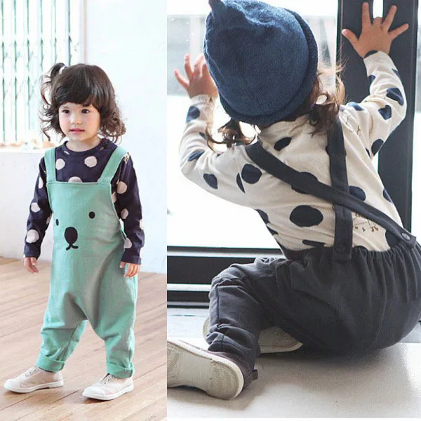Baby Boy Girls Toddler Bib Pants Overalls Bear Print Harem Pants Long Trousers