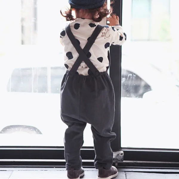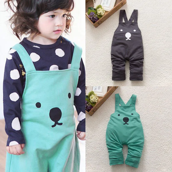 New fashion Baby Boy Girls Bib Pants Overalls Bear Print Harem Pants Long Trousers 0-3Y